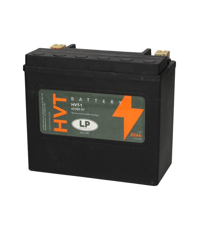 De HVT-1 (MH HVT 1) Harley accu is 12 volt en 20 ah (type 65989-97) en is van het merk Landport (LP). De HVT motoraccu's zijn gemaakt voor de zware V-Twin motoren, voor deze motoren is een hoog koudstart vermogen een must en bij de HVT is daar extra rekening mee gehouden. HVT is een AGM accu (AGM / glasvezel technologie) die compleet gesloten en onderhoudsvrij is, dit wordt ook vaak als SLA-uitvoering aangeduid. De HVT is voorzien van een hittebestendige accubak die tegen extreme trillingen kan. De HVT is 100% lekvrij en kan in iedere positie gemonteerd worden. Voor Harley Davidson en natuurlijk de andere motoren is de HVT de ideale accu. HVT wordt gevuld en geladen geleverd en is dus direct klaar voor gebruik. Een accu met dezelfde specificaties is de GHD20H-3 deze accu heeft ook een hittebestendige accubak. Afmetingen zijn 175 mm lang, 87 mm breed en 155 mm hoog. Gratis verzenden.